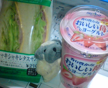 シャキシャキレタスサンド、苺ヨーグルト。