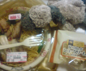 サンドイッチ、野菜ジュース、デザートにシュークリーム。